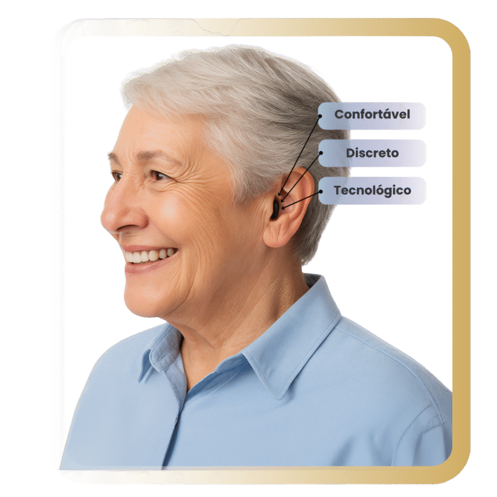Aparelhos auditivos discretos e confortáveis que devolvem clareza, confiança e conexão com quem você ama.